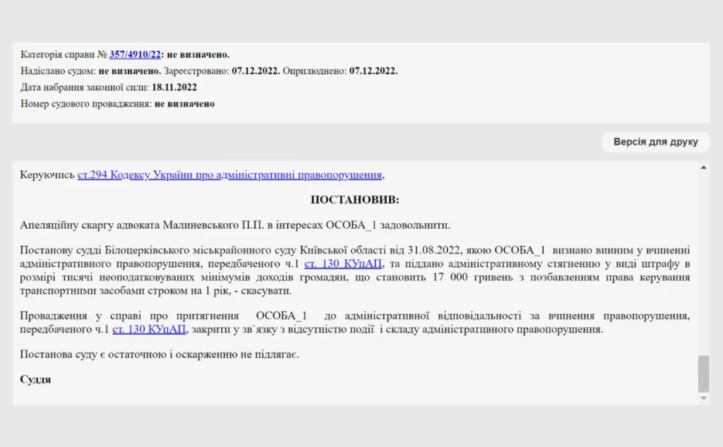 Я вернувся до юриста після того, як суддя визнав мене винним за статтею 130, позбавивши мене прав і наклавши штраф у розмірі 17 000 грн. Павло Петрович швидко ознайомився з матеріалами справи, склав та подав до апеляційного суду скаргу. Також він надав мені консультації щодо подальших дій і допоміг зібрати додаткові документи. У результаті розгляд в апеляційному суді завершився на мою користь, і прийняту раніше постанову суду скасували.