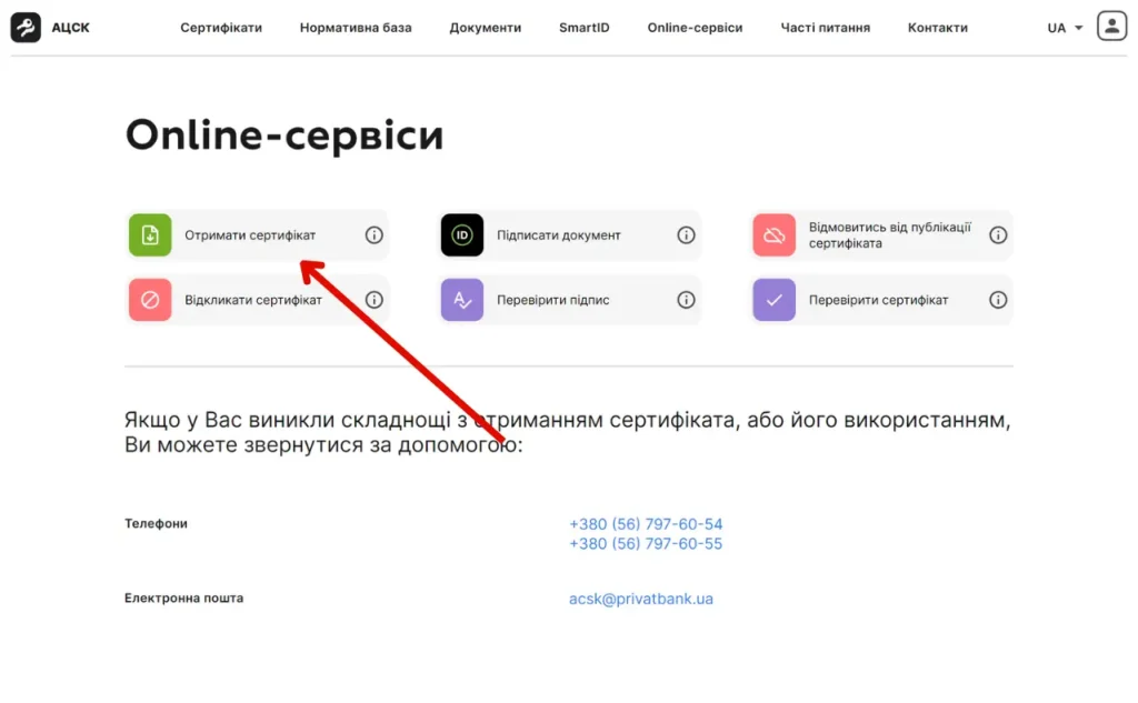 Перейдіть у розділ Online-сервіси → Отримати сертифікат.