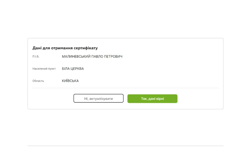 Перевірте правильність і актуальність вашої інформації та натисніть кнопку «Так, дані вірні».
