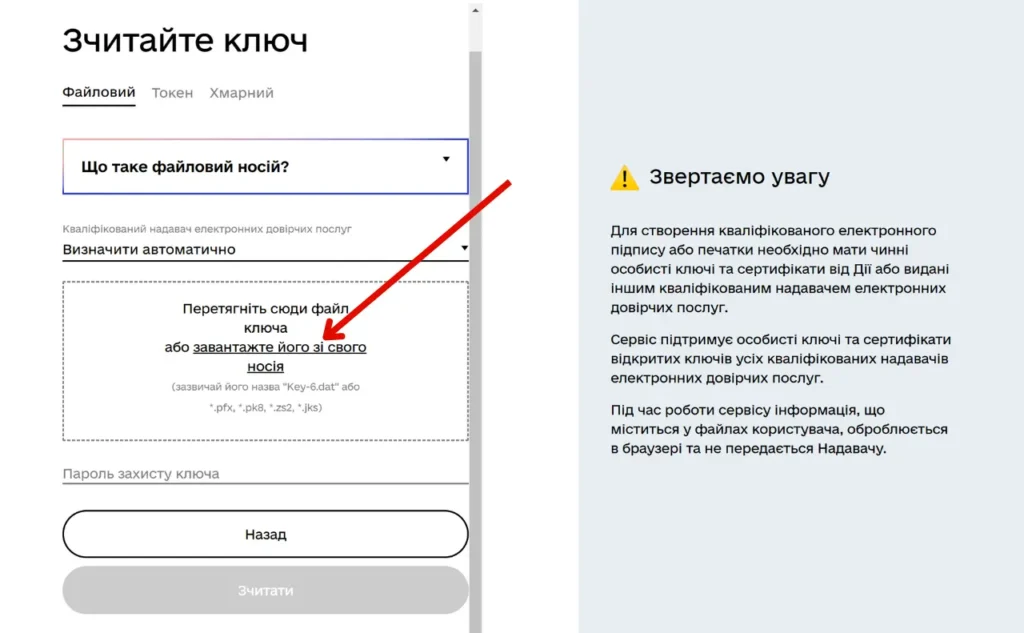 Зверніть увагу, що якщо всі вищеперераховані дії ви виконували лише через смартфон, то після повторного сканування QR-коду та введення пароля вам обов’язково потрібно повернутися на сторінку сайту та завантажити підписаний файл у пам’ять мобільного телефону. Підписаний файл має розширення .asice.